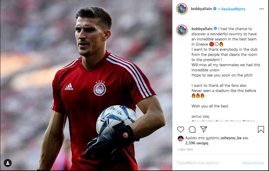«Είχα την ευκαιρία να ανακαλύψω μια όμορφη χώρα. Είχα μια απίστευτη σεζόν με την καλύτερη ομάδα στην Ελλάδα. Θέλω να ευχαριστήσω κάθε άνθρωπο στο σύλλογο. Από τους καθαριστές μέχρι τον Πρόεδρο. Θα μου λείψουν όλοι οι συμπαίκτες. Ελπίζω να σας δω σύντομα.