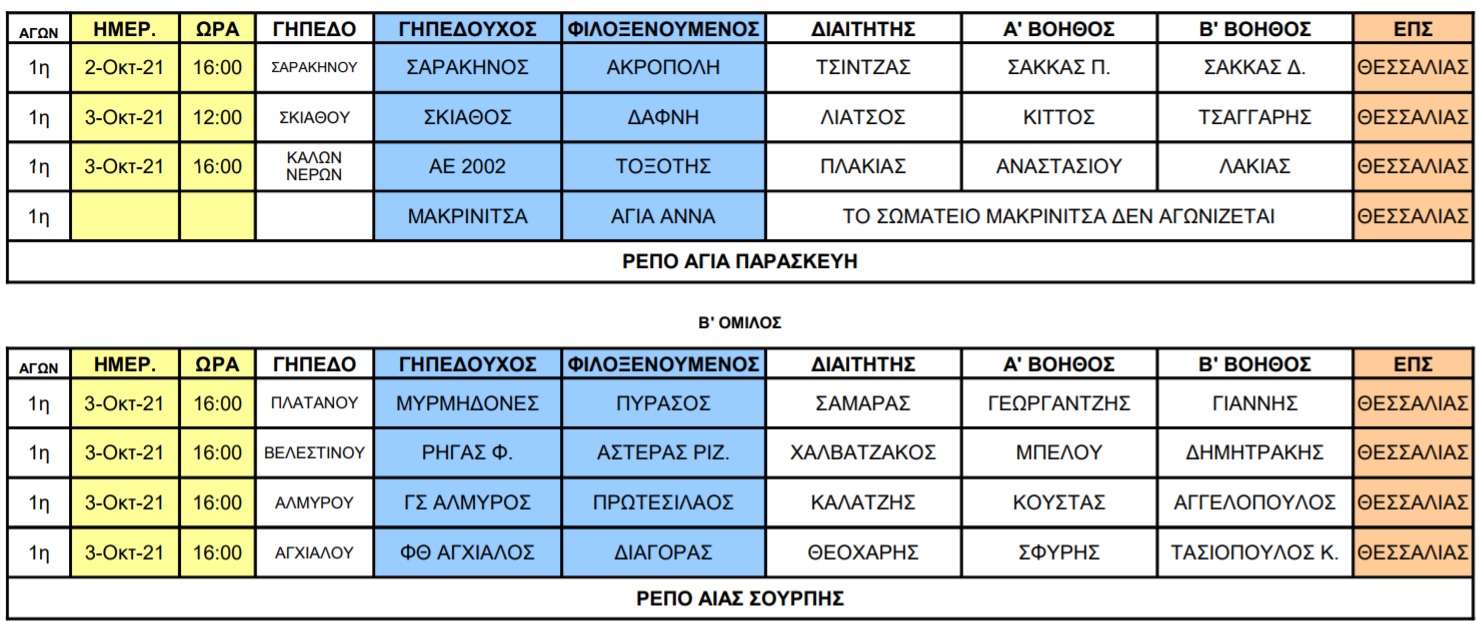 Ανακοινώθηκαν από την ΕΠΣ Θεσσαλίας οι διατητές που θα διευθύνουν τις αναμετρήσεις της πρεμιέρας στην Α’ ΕΠΣΘ.