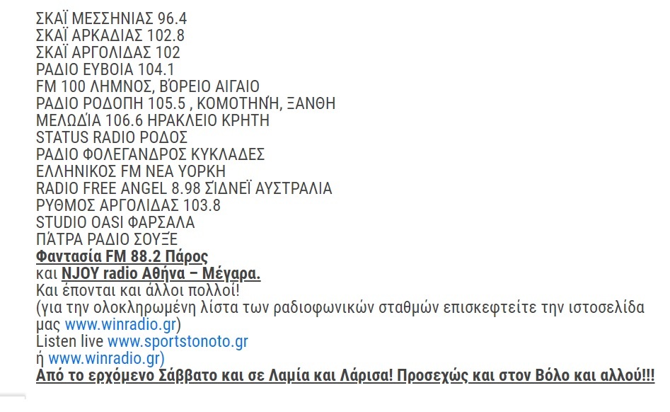Η εκπομπή του Sportstonotoradio μεταδίδεται από πολλά ραδιόφωνα της περιφέρειας αλλά και της Αμερικής.