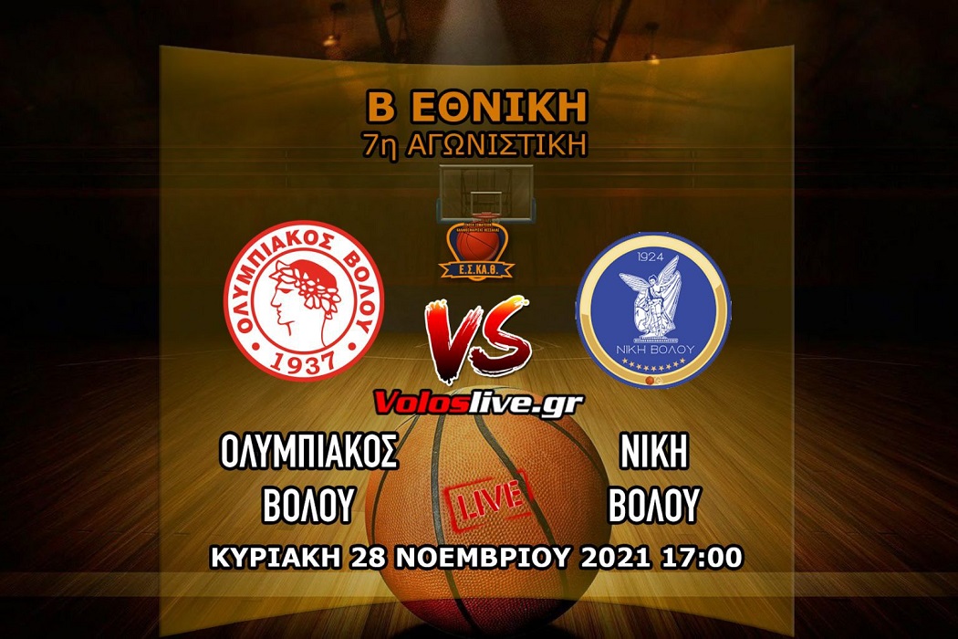 Δείτε Ζωντανά το βολιώτικο ντέρμπι για την 7η αγωνιστική της Β’ Εθνικής μπάσκετ. Ο Ολυμπιακός Βόλου υποδέχεται στις 17:00 τη Νίκη Βόλου στο κλειστό του ΕΑΚ.