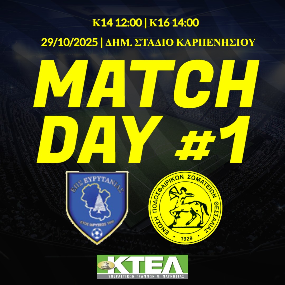 Τα παιχνίδια θα διεξαχθούν στο Δημοτικό Στάδιο Καρπενησίου. Η Κ14 αγωνίζεται στις 12:00 και η Κ16 στις 14:00. Η αναχώρηση θα πραγματοποιηθεί από τα γραφεία της Ένωσης την Τετάρτη 29/10/2025 7:30 (ώρα συγκέντρωσης 07:15).