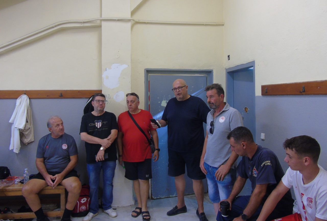 Εκπροσωπώντας τον ισχυρό άνδρα της ομάδας Σάκη Τζήμα, παρακολούθησε την προπόνηση του Ολυμπιακού Βόλου Β’, υπό τις οδηγίες του Βαγγέλη Τάχου, και στη συνέχεια βρέθηκε στα αποδυτήρια όπου μίλησε στους νεαρούς ποδοσφαιριστές.
