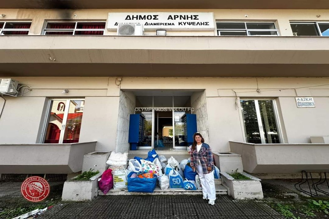 Το ποδοσφαιρικό τμήμα του Ολυμπιακού Βόλου με την βοήθεια του φιλάθλου κοινού παρέδωσε σήμερα Πέμπτη 19 Οκτωβρίου είδη πρώτης ανάγκης, ρούχα και τρόφιμα στην κοινότητα της Κυψέλης.