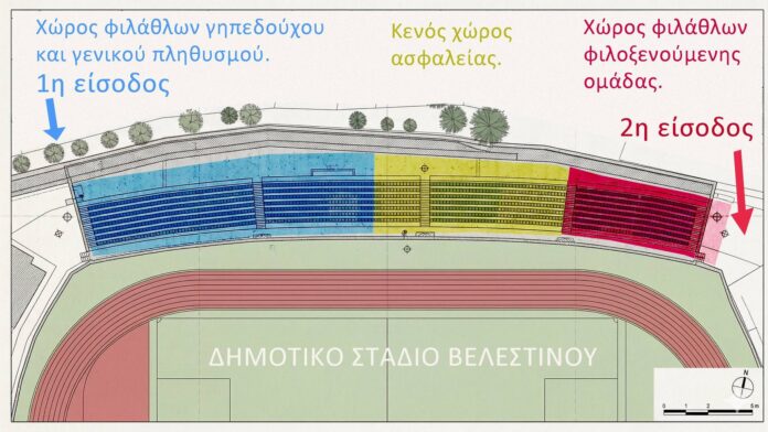 Οι φίλαθλοι του Α.Σ.Β. Ρήγας Φεραίος θα προμηθεύονται εισιτήρια από το εκδοτήριο της άνω θύρας (είσοδος 1) από 12:00 έως 16:00 και θα εισέρχονται αποκλειστικά από την άνω πύλη.