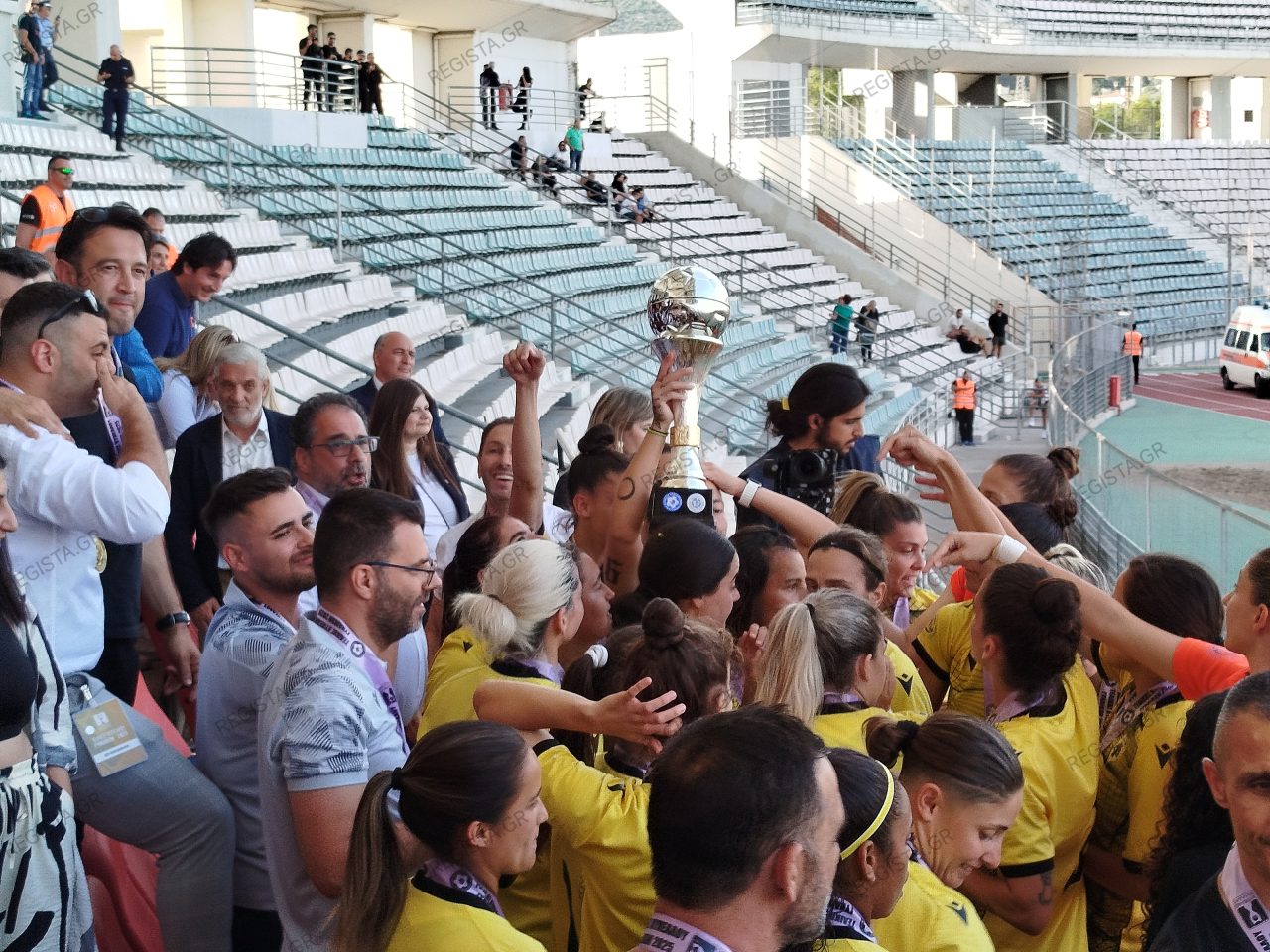 Το regista.gr βρέθηκε στο Πανθεσσαλικό Στάδιο του Βόλου και σας μεταφέρει όσα συνέβησαν στον μεγάλο τελικό του Κυπέλλου Ελλάδας Γυναικών, που βρήκε νικήτρια την ΑΕΚ με 2-0 κόντρα στον Παναθηναϊκό.