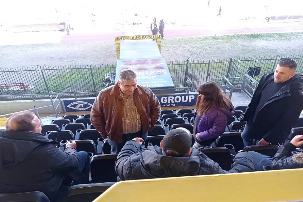 Ο επικεφαλής του Λαρισινού συγκροτήματος Λάμπρος Ιωακείμ, είχε κουβέντα τόσο με τον πρόεδρο της Αναγέννησης Δημήτρη Παπαδημητρίου, όσο και με τα μέλη της διοίκησης Δημήτρη Γιαννακό και Νίκο Κουτσιανά.